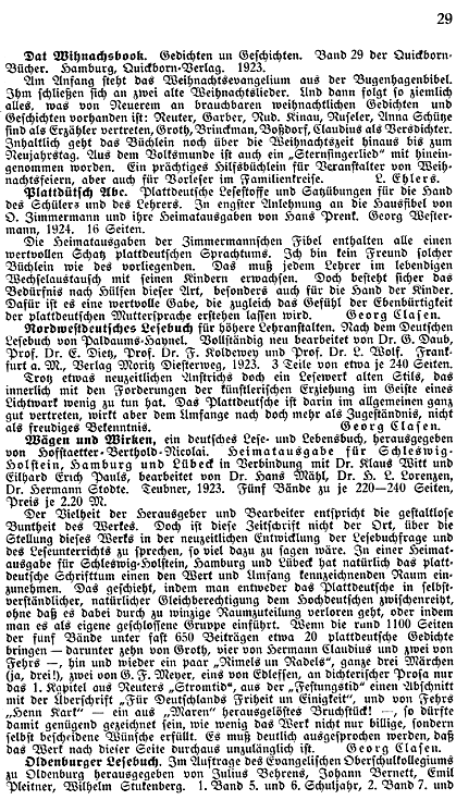 | Rez. in Quickborn: | L. Ehlers in: Quickborn Jg. 18, S. 29 |