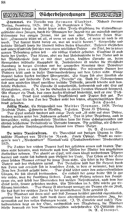 | Rez. in Quickborn: | A. Strempel in: Quickborn Jg. 19, S. 88 |