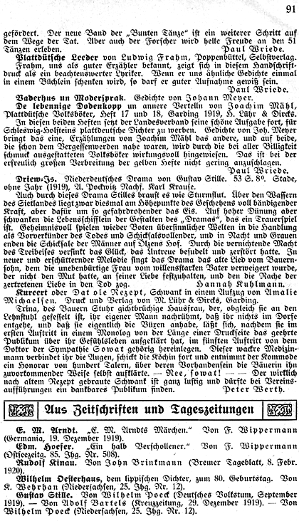 | Rez. in Quickborn: | P. Wriede in: Quickborn Jg. 13, S. 91 |