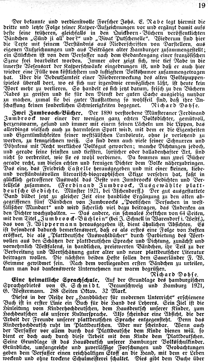 | Rez. in Quickborn: | R. Dohse in: Quickborn Jg. 15, S. 19 |