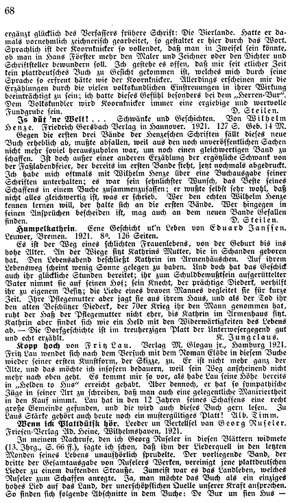 | Rez. in Quickborn: | A. Timm in: Quickborn Jg. 15, S. 68 |