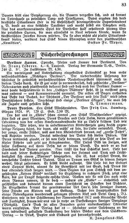 | Rez. in Quickborn: | K. Jungclaus in: Quickborn Jg. 17, S. 83 |