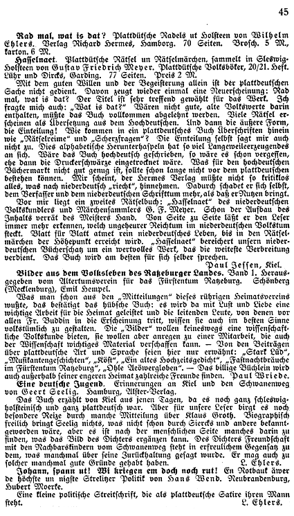 | Rez. in Quickborn: | L. Ehlers in: Quickborn Jg. 14, S. 45 |