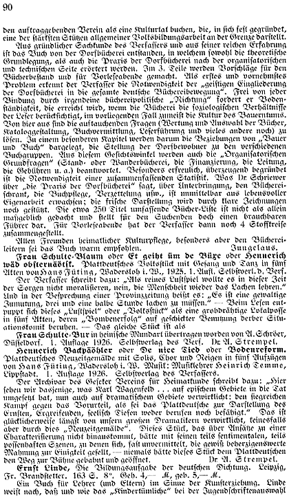 | Rez. in Quickborn: | A. Strempel in: Quickborn Jg. 20, S. 90 |