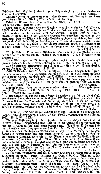 | Rez. in Quickborn: | P. Jessen in: Quickborn Jg. 15, S. 70 |