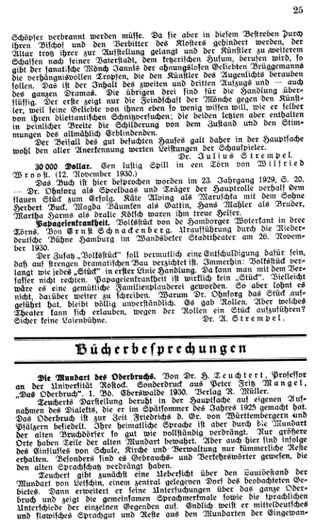 | Rez. in Quickborn: | A. Strempel in: Quickborn Jg. 24, S. 25 |