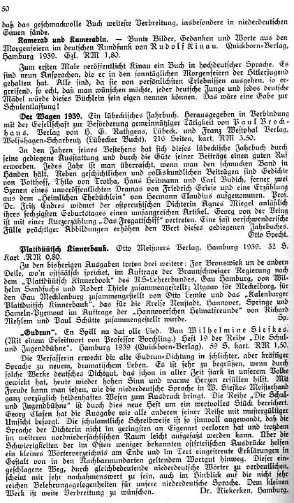 | Rez. in Quickborn: | Niekerken in: Quickborn Jg. 33, S. 50 |