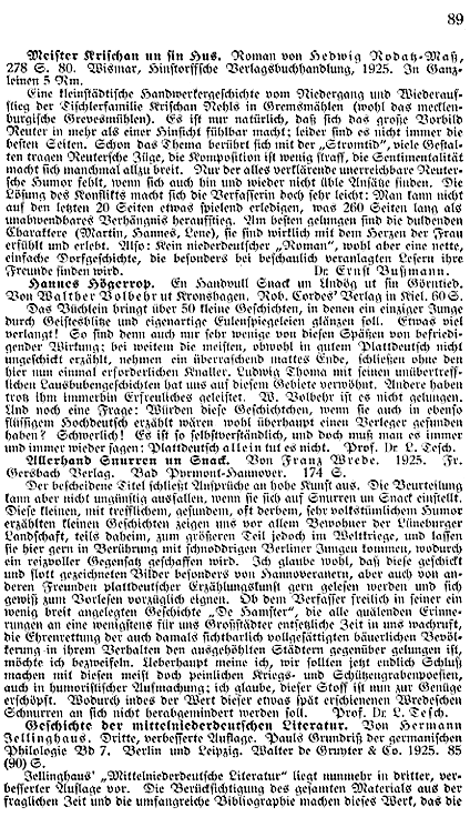 | Rez. in Quickborn: | L. Tesch in: Quickborn Jg. 19, S. 89 |