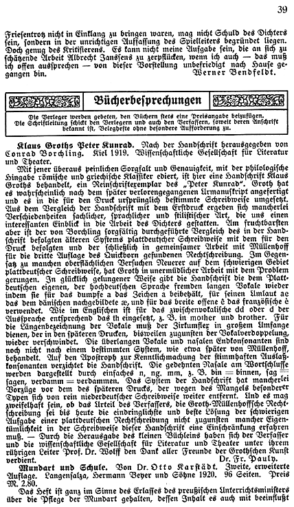 | Rez. in Quickborn: | Fr. Pauly in: Quickborn Jg. 14, S. 39 |