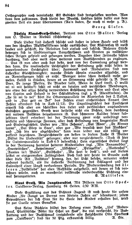 | Rez. in Quickborn: | A. Str. in: Quickborn Jg. 23, S. 84 |