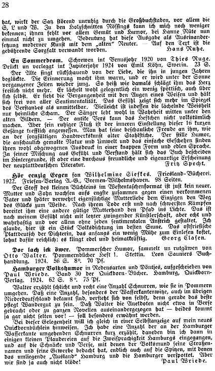 | Rez. in Quickborn: | G. Clasen in: Quickborn Jg. 18, S. 28 |