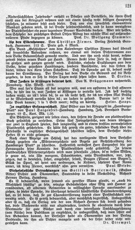 | Rez. in Quickborn: | P. Wriede in: Quickborn Jg. 12, S. 121 |