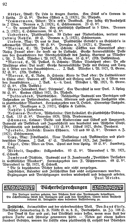 | Rez. in Quickborn: | Fritz Specht in: Quickborn Jg. 14, S. 92 -93 |